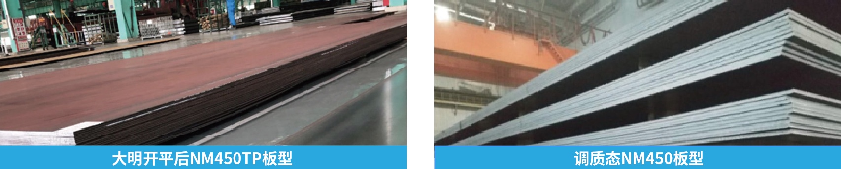 NM400TP、NM450TP 應用于自卸車、泵車、耐磨廂體鋼的底板、前后廂板、側廂板和結構件等 |